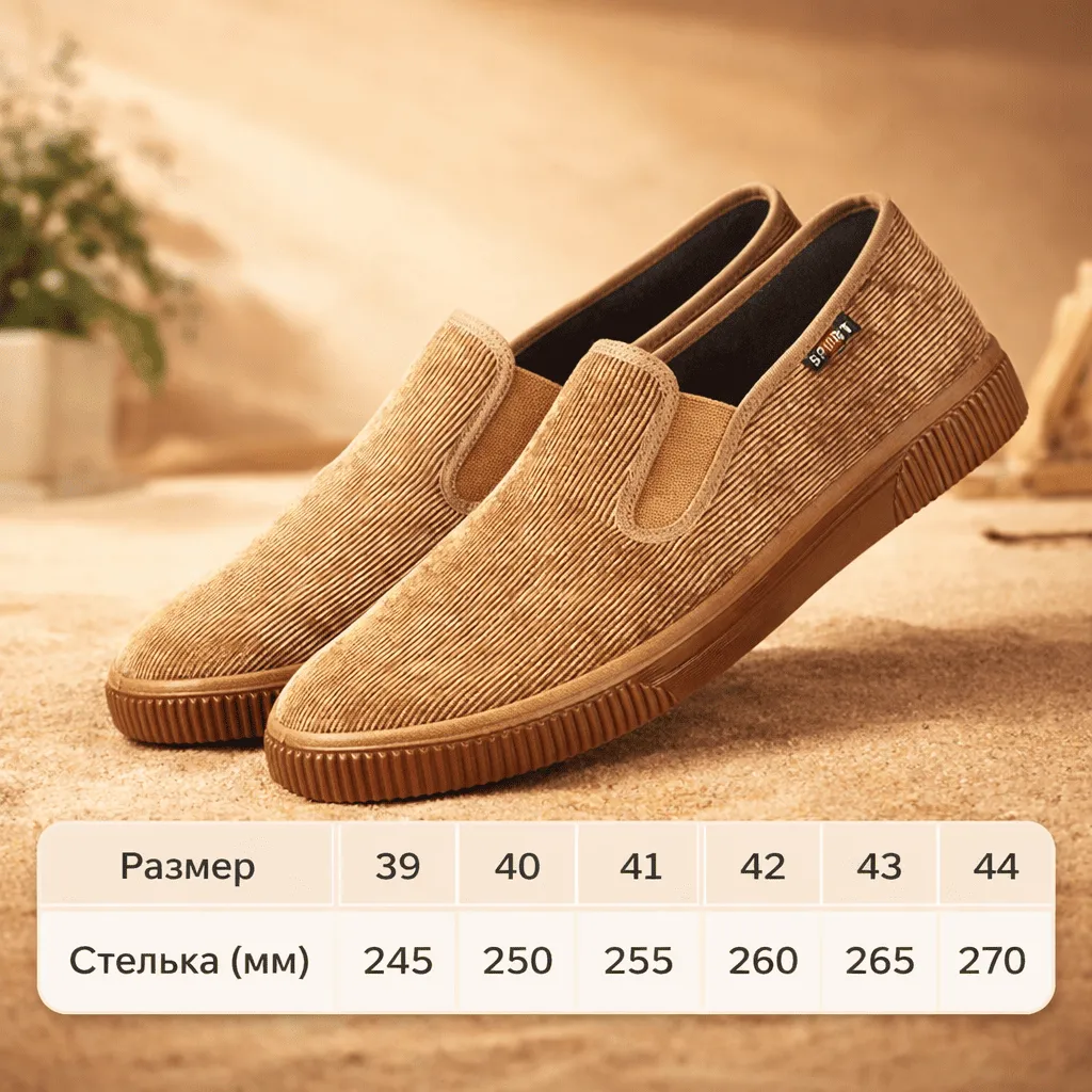 Мужские слипоны выполнены из мягкого вельветового материала, который обеспечивает отличную вентиляцию и комфорт в течение всего дня. Благодаря лёгкой конструкции обувь практически не ощущается на ноге, что делает её идеальной для повседневной носки. Антискользящая резиновая подошва гарантирует устойчивость на различных поверхностях, а лаконичный дизайн позволяет легко сочетать обувь с любым гардеробом — от повседневного до более стильного образа.