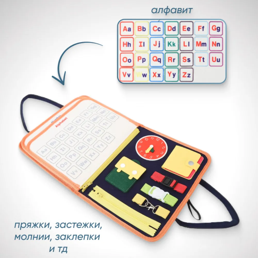 Мягкий бизиборд сочетает в себе игру и обучение, помогая вашему ребенку познавать мир через тактильные ощущения и яркие элементы. Это идеальный подарок для развития малыша.