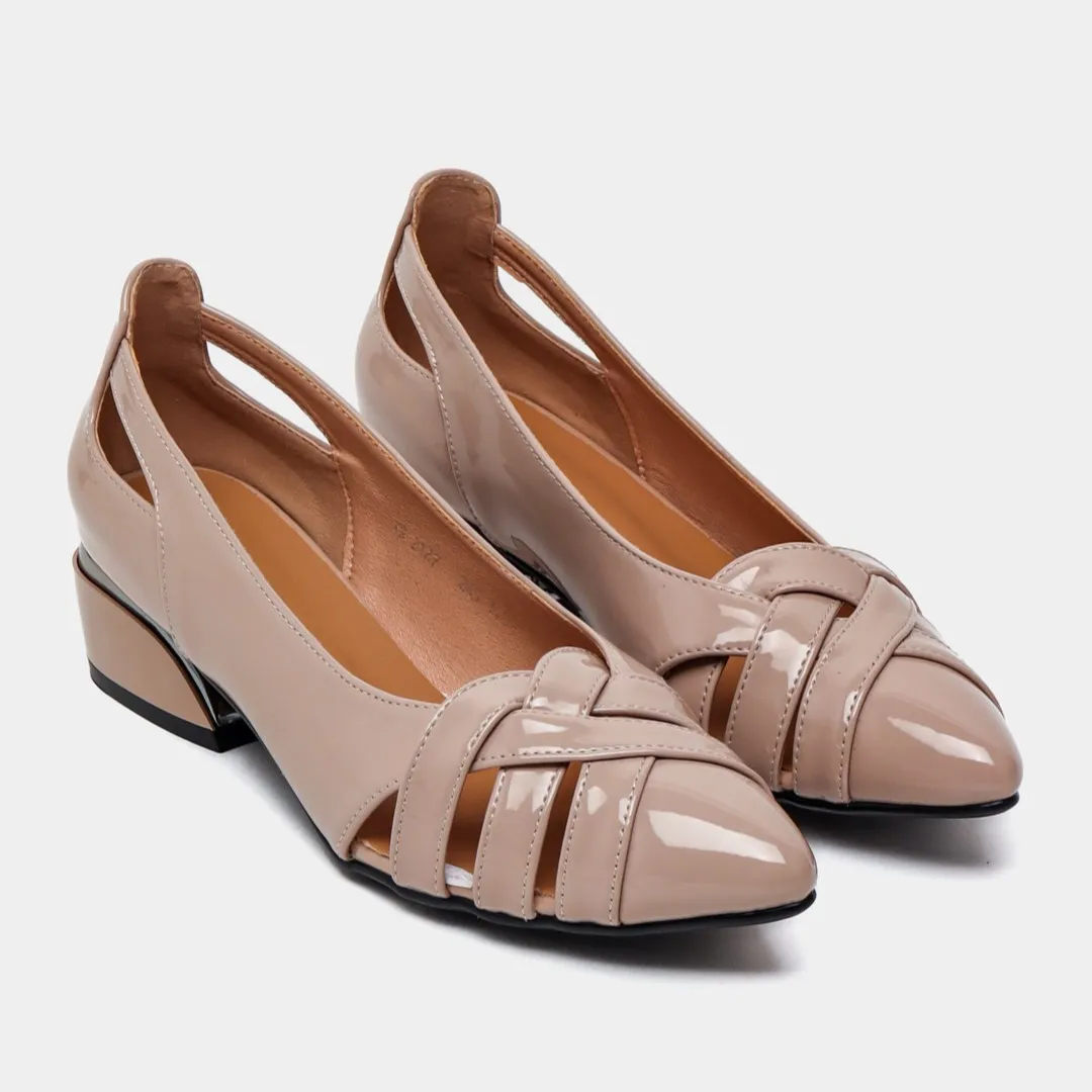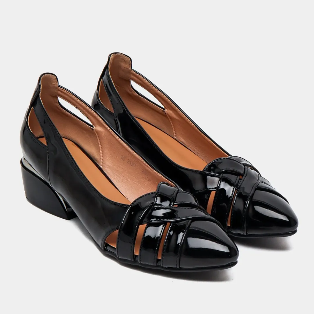 Гламурные и стильныеТуфли на плоской подошве с острым носком украшены вырезами, которые делают ее модной