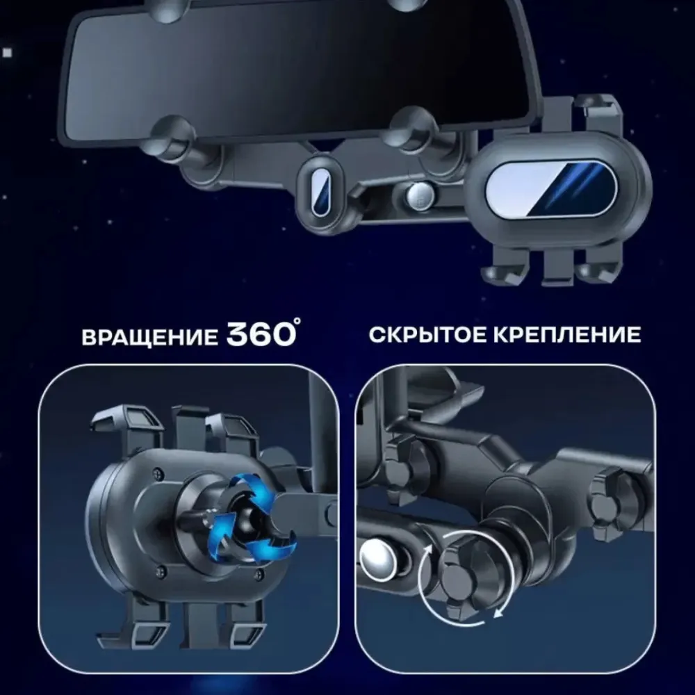 Держатель для телефона на зеркало заднего вида - это практичное решение для водителей. Легко крепится без инструментов и регулируется под нужный угол. Обеспечивает надёжную фиксацию смартфона, не мешая обзору. Идеален для использования навигатора, при этом руки остаются свободными. Подходит для большинства моделей телефонов и зеркал.