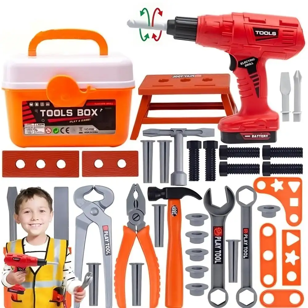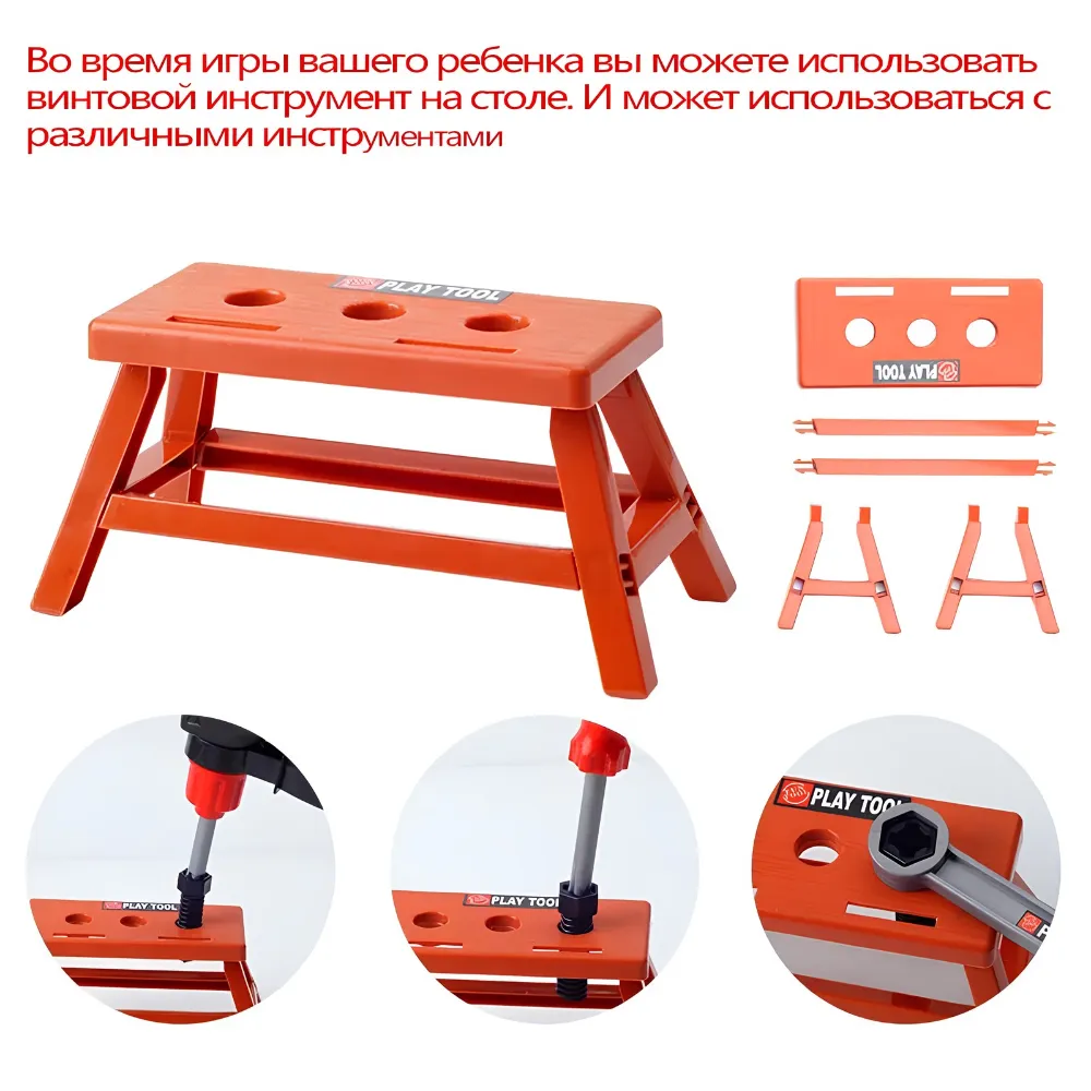 Функциональность и удобствоИгровой набор инструментов оснащён винтовым инструментом, который легко использовать на столе. Комплект включает различные инструменты, позволяя ребёнку создать увлекательную игровую обстановку и развивать навыки.