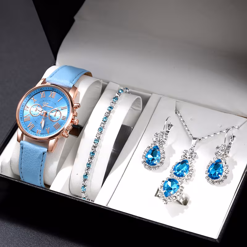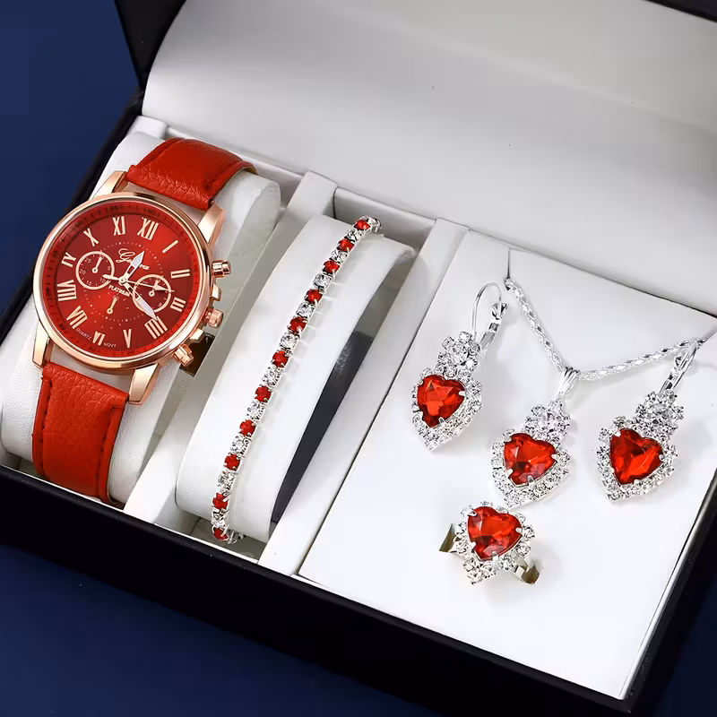 Часы, серьги, кулон, браслет и кольцо в одном стильном наборе