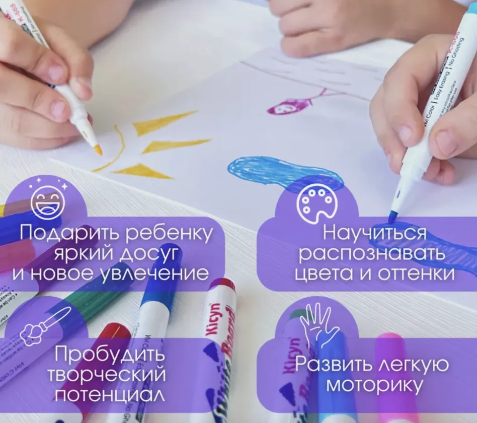 Рисуй на коже, бумаге или воде — и наблюдай, как оживает твой рисунок!Фломастеры для рисования на любых гладких поверхностях без следов