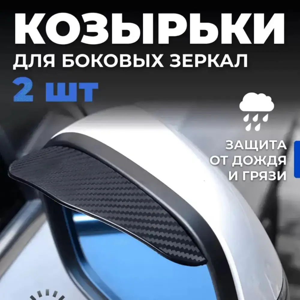 Козырьки для боковых зеркал - это простое, но эффективное решение для защиты зеркал от осадков, пыли и грязи. Устанавливаются за секунды, крепятся над зеркалом и предотвращают попадание капель на стекло. Улучшают безопасность и обзор в дождь, снег и при езде по грязным дорогам.