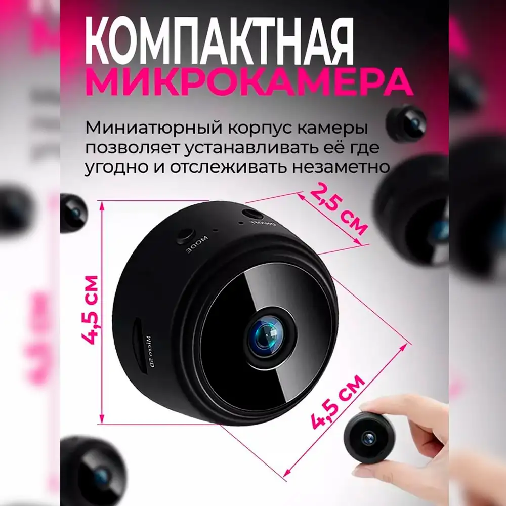 Компактный размерМини-камера, которую можно установить практически в любом месте, обеспечивая при этом высокую степень незаметности