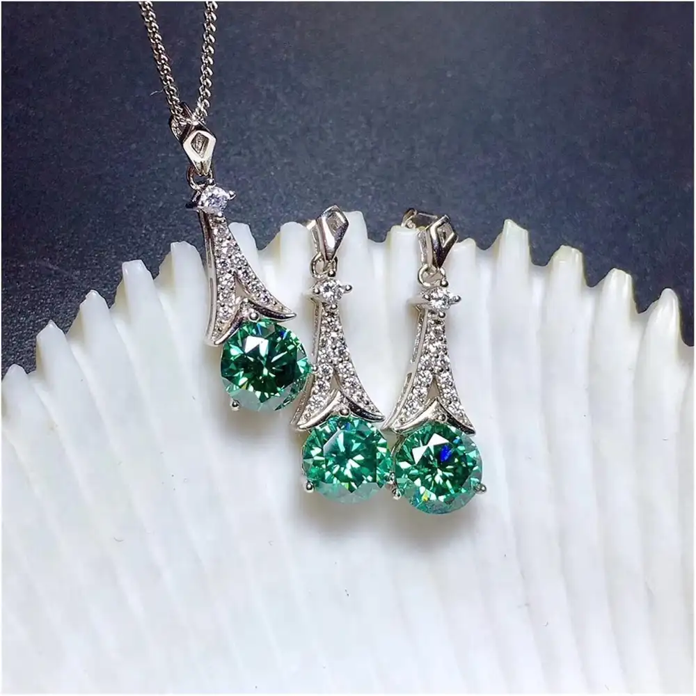 Комплект включает серьги, подвеску и цепочку 45 см, идеально сочетающиеся друг с другом. Изумрудные стеклянные камни придают украшениям яркость, а серебряное покрытие добавляет изысканности.