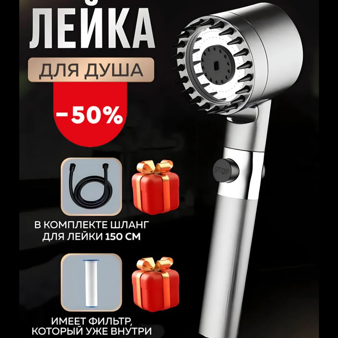 Фильтрация и экономия водыКнопка с функцией старт/стоп позволяет экономить воду, так же уже встроенный фильтр в насадке очищает весь поток воды.