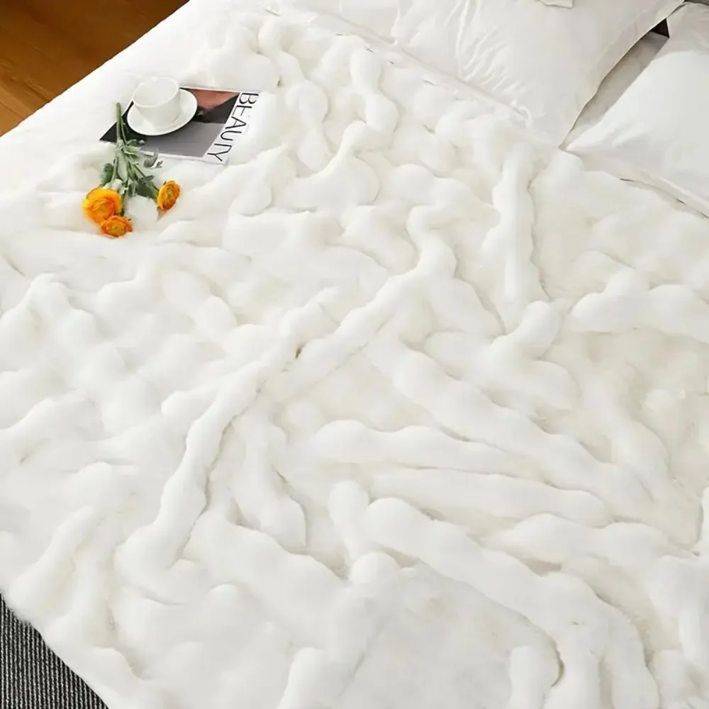 Теплый белый плед — это уютный и мягкий аксессуар, идеально подходящий для создания комфортной атмосферы дома. Его универсальный цвет гармонично впишется в любой интерьер, добавляя светлоты и ощущение чистоты.