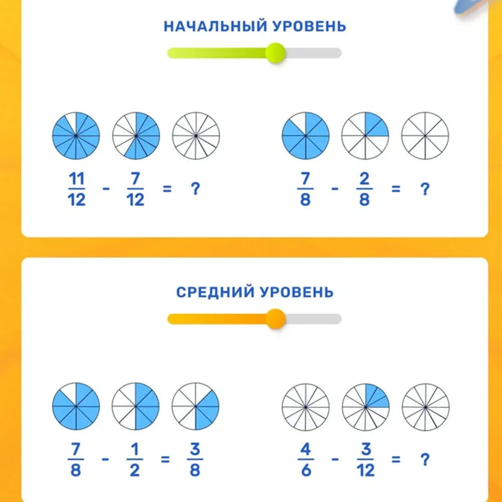 Детская книга-головоломка с дробями