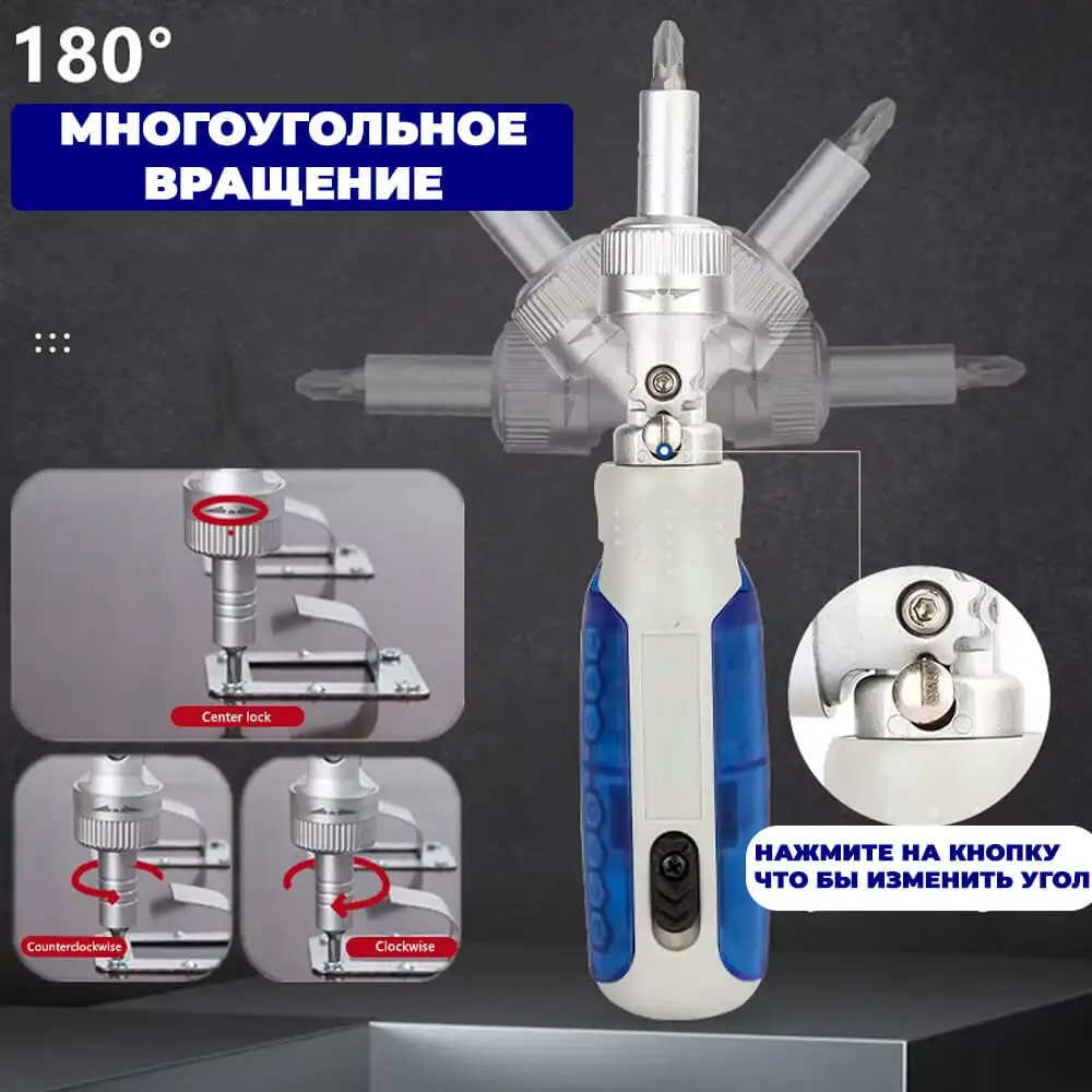 Универсальный инструмент для любых задач - от мелкого ремонта до профессионального использования. Храповый механизм позволяет работать быстрее и с меньшими усилиями.