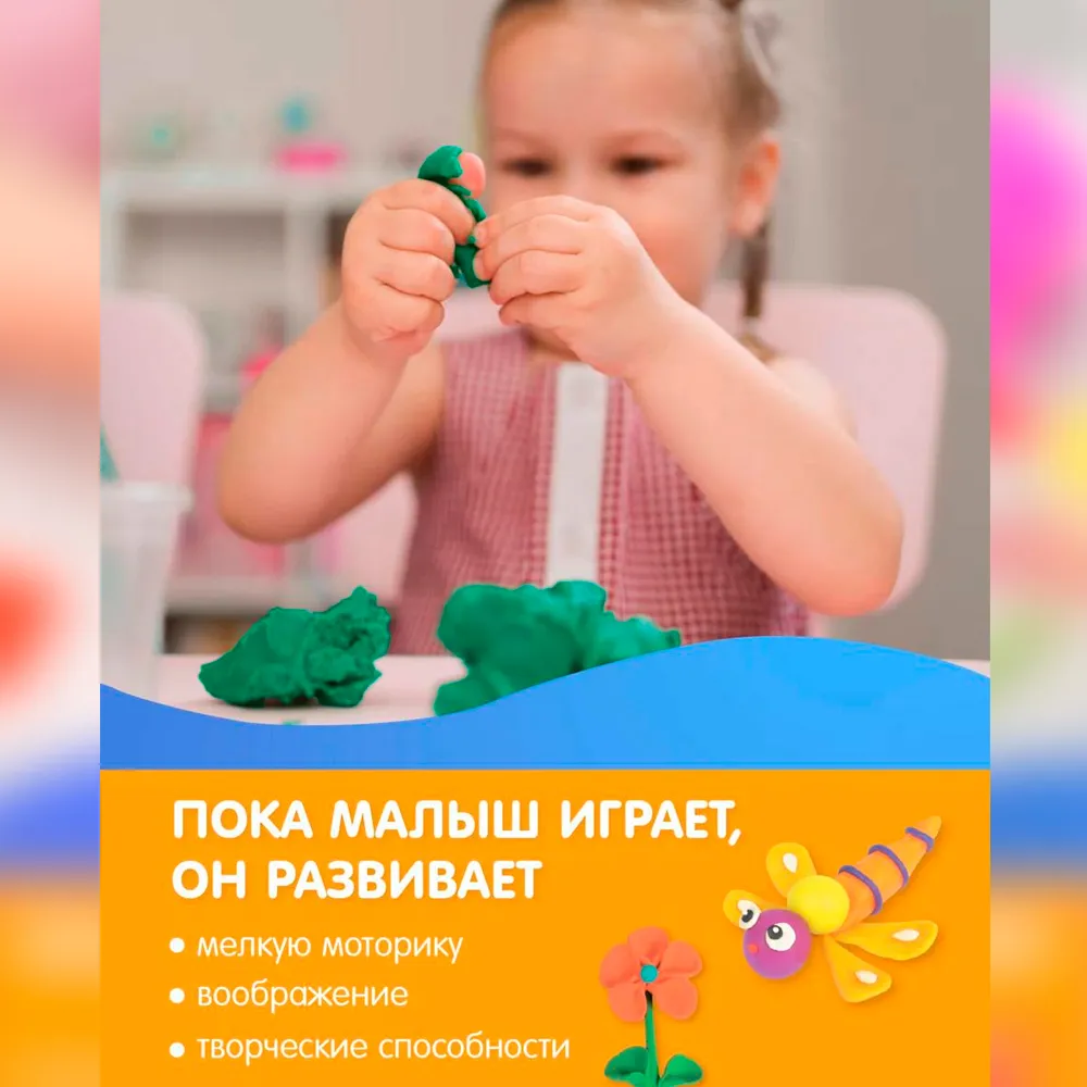Набор для лепки — это идеальный инструмент для детского творчества, который помогает развивать моторику, воображение и учит создавать уникальные поделки своими руками. В комплекте идет бесплатный фартук для лепки!